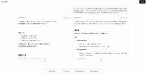 3. あなたの投票: 2つの回答を比較し、あなたの業務目的にとって「より良い」と感じた方を、あなたは単純にクリックして選びます。